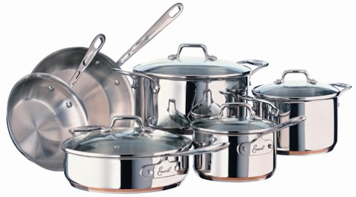Sometimes the difference from ordinary cooking and great culinary achievements may depend on the quality of the cooking tools. Fundamentally, cookware quality is important. The materials used in pots and pans contribute to heat conductivity, uniformity, and overall consistency of heat distribution that can influence flavors derived from all ingrdients. This set of gourmet-class cookware was created by internationally acclaimed chef Emeril Lagasse, and meet his standards for culinary excellence. Jointly developed with leading cookware manufacturer, All-Clad, this set offers the at-home high performance stainless steel at an exceptional value. The collection features a thick, triple-layer disk of stainless steel, aluminum and copper, permanently bonded together to ensure fast and even heat distribution. The cooking surface is made of non-reactive, satin-finish stainless. Other features include perfectly-balanced and securely-riveted, tempered glass lids and flared lips for drip-free pouring. Safe for glass/ceramic stovetops. This 10-piece set includes an 8-inch Fry Pan, 10-inch Fry Pan, 2-quart Sauce Pan with Lid, 3-quart Casserole with Lid, 3-quart Saute Pan with Lid, 6-qt. Stock Pot with Lid This affordable cookware set may just be the link to raise your cooking results from good to delicious. Dishwasher safe for easy cleaning Emerilware includes a Lifetime warranty